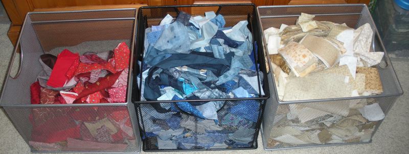 In preparation for making Red/White/Blue blocks on Memorial Day weekend, I’ve pulled my bins out and cutting foundation blocks will be next.