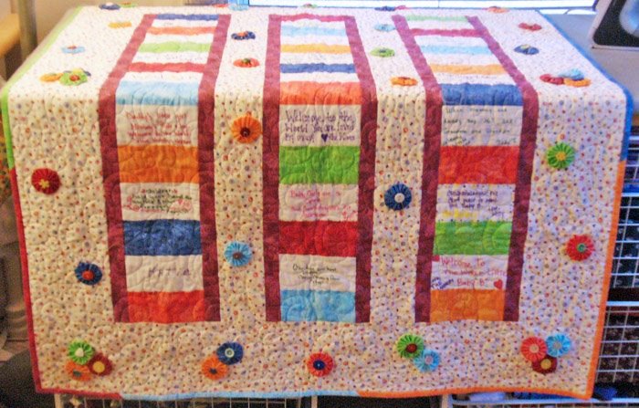 On Becky’s blog, a Funky Caterpillar quilt from RWB coins donated by HeartStrings members. She also wrote instructions for this quilt and shared them.