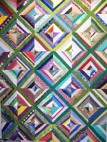 Just one week left in our Sept/Oct project to make green centered blocks and quilts for guys. Here’s a top already completed by Laura, it’s heading to Jay in NE where it will be quilted and donated.