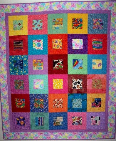 Here are two Happy Block quilts by Mary Hopkins – finished and ready to donate. She added borders to hers but they look equally good without.