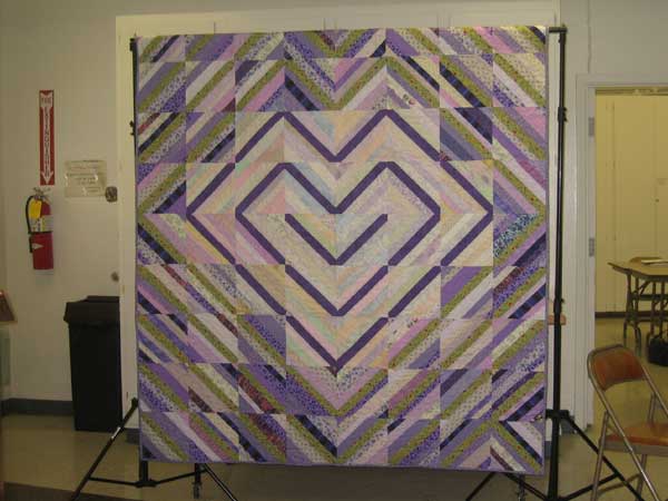 I just wanted you to know how much good the heartstrings pattern has done. The picture included in this e-mail is of a quilt that our group did earlier this year. We live in a retirement community and our visitor’s center need to raise some funds, so we decided to make this quilt and let them raffle it off. It was such a delightful project. All the ladies made the blocks, one lady sewed the blocks together, I quilted it, and another lady did the binding. It was really a group effort.