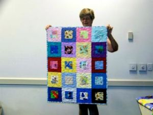 Do you remember the Happy Block project we started back in January and February? Well we’re still making and finishing quilts in fact I put the last stitch in the binding of one tonight and I was excited to read the email from Sue about her group. She wrote: