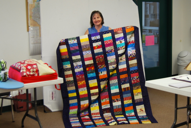 The largest group worked on assembling Happy Blocks from a project earlier this year. Although we’re no longer accepting Happy Blocks for group quilts, you can find instructions to make your own here – Happy Block Instructions.
