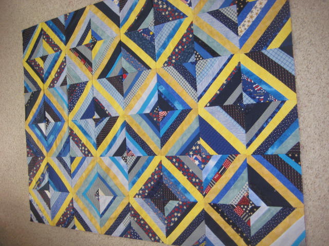 More Yellow! This time from Alycia and she chose to work with the blue/yellow option from our last project. So while we’ve moved on to the Homespun project – we’re still finishing up these yellow centered quilts.