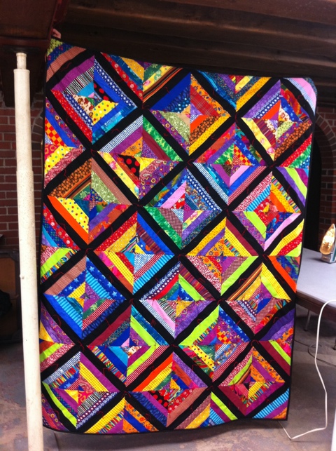 Brenda pieced and quilted her black and bright HeartStrings quilt. Don’t you love the sashing?