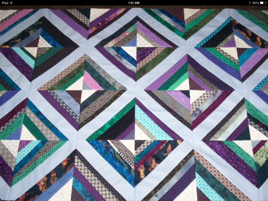 Every now and then we like to play around with different combinations and colors and our project for July and August uses light colored centers. If you’re sending in blocks for group quilts, use the block guidelines (Link on the right sidebar) and substitute a white center strip like Joyce did.