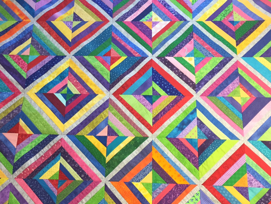 I chose to make my gray center strip a little narrower ( I cut it 1.5 inches rather than two inches) and paired the gray with brights.