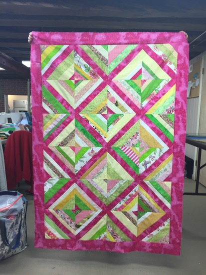 ….added a border and this little top is ready for tying. We’ll roll that backing around to the front for binding and just think how cute this one will be.
