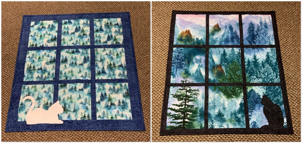 I’ve done a couple little quilts for my sister’s cats but I didn’t think about using strings. I used a panel and made a “window” for them to look out.