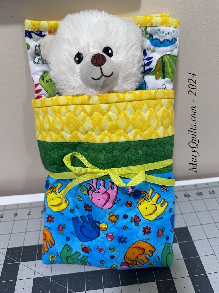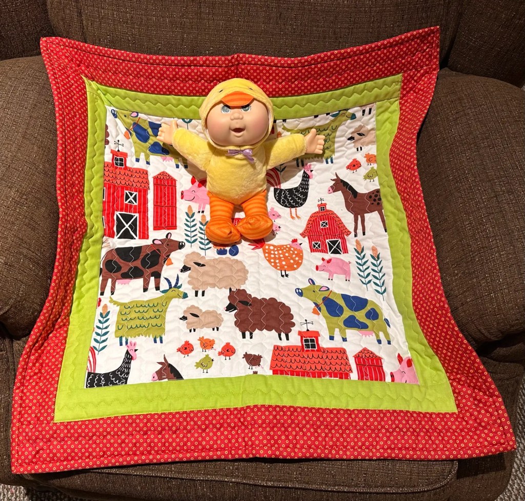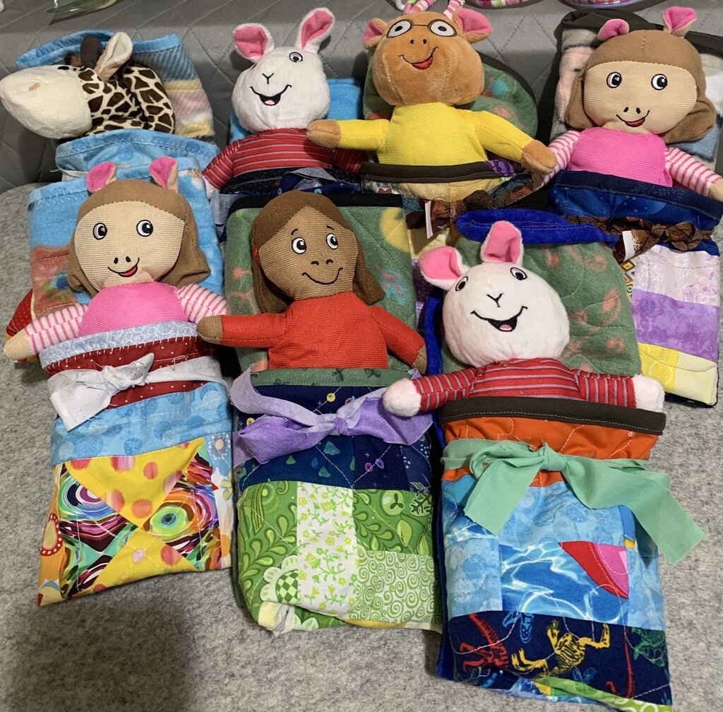 Our group is working on a Little Quilts project in February and March. Making small quilts and wrapping dolls and stuffed animals in them to donate to children in need.