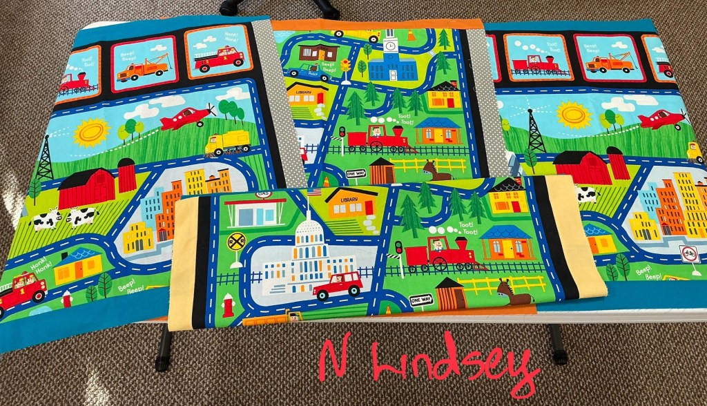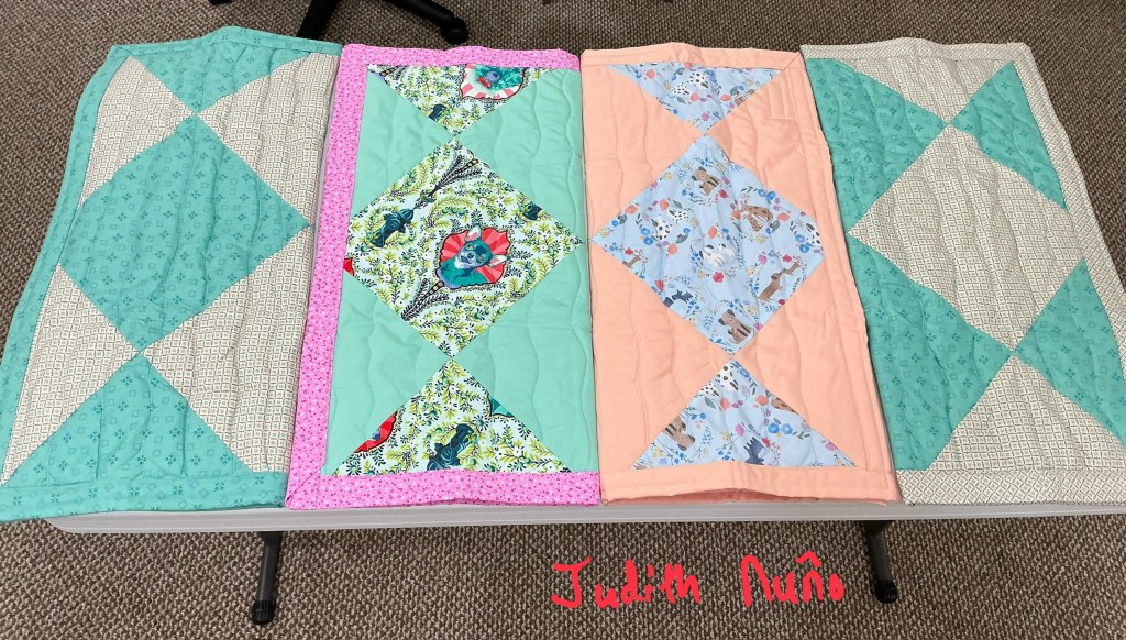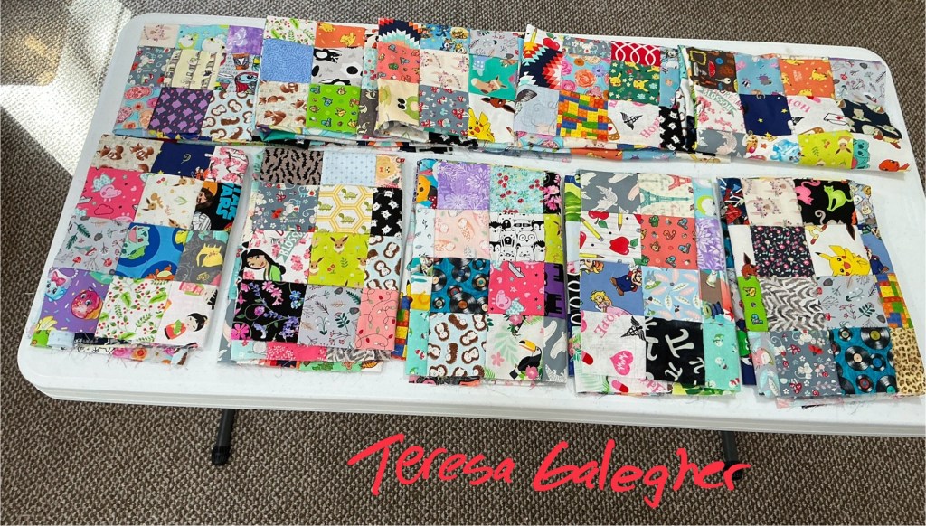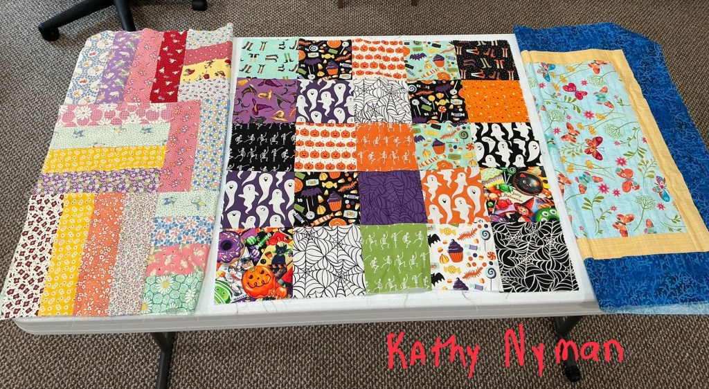 So we are still working on our larger quilts for donation even though we had fun with the Little Quilt Project. It’s also FUN to use up those leftovers.