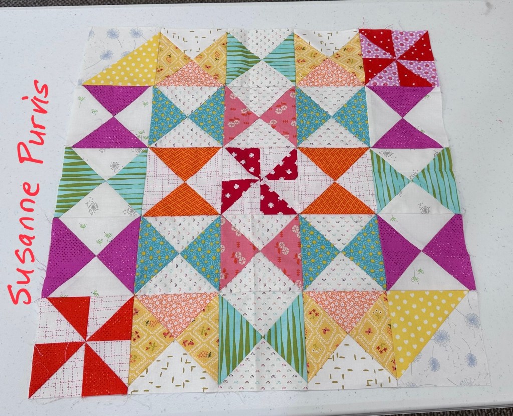 Some of us got an early start. Nancy is using orphan blocks as the base for many of her quilts.