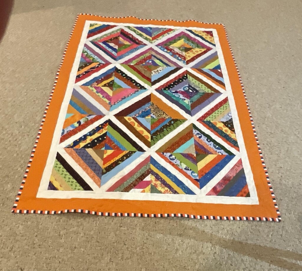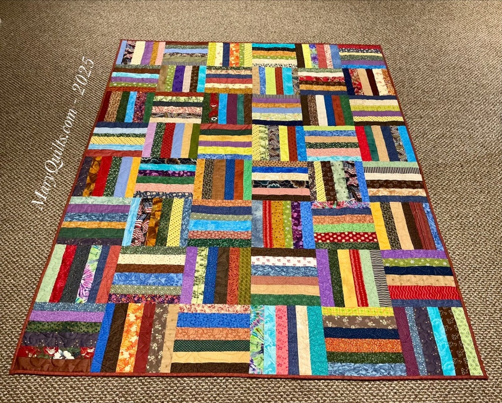 This is one of my Rail Fence quilts just finished made from leftover strips and strings.