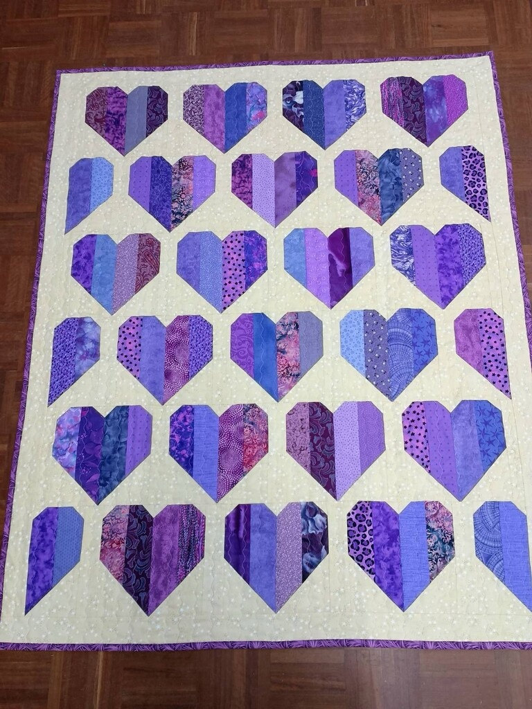 Stephanie made this cute heart quilt mostly from leftover binding bits!