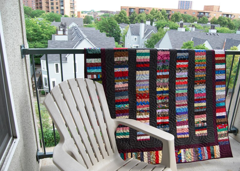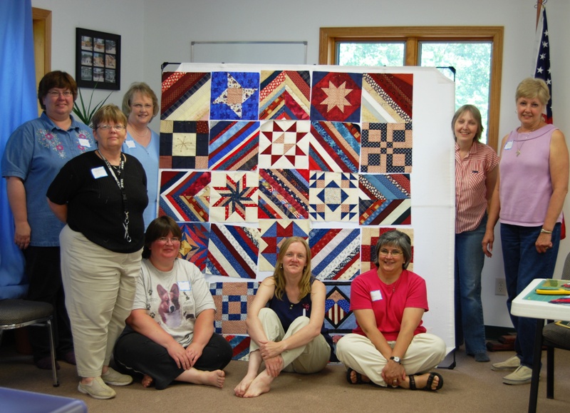 A group of 9 HeartStrings members gathered in Roberts, WI today. We worked, we laughed, we ate, we shopped (on the way home) and while our main focus this meeting was Patriotic Quilts for Quilts of Valor we also worked some on Purple Project quilts and other string projects.