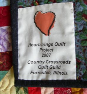 Joanne emailed a photo of her finished HeartStrings quilt and wrote : I finished and donated the completed Heartstrings quilt at my guild on Monday night. The completed quilt will go to the Rockford Rescue Mission(IL). They have requested 10 – 12 twin size quilts. I also have volunteered to put together quilts from members completed blocks, so hopefully we’ll get this ball rolling here! I’ve attached a picture of the quilt. I also sent a blurb for our newsletter so the website should be getting a few more hits next month!