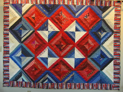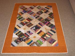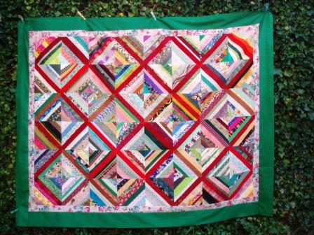 My first string quilt was made from a pattern in the book Great Lakes Great Quilts (my version was not nearly as bright as the one in the book).
