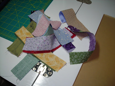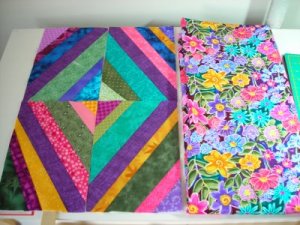 She told us that “the string blocks are going to be great for teaching 1/4″ seams, pressing, etc. and we’re going to be doing red, white and blue blocks.”