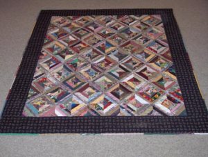 Cricket tells me that these quilts will be donated to one of the shelters in Western Massachusetts, around Springfield. “The way I determine it is to see how many quilts I have, what sizes they are, and then call a shelter that uses those sizes. I give one quilt to each person in the shelter at that time, and the quilts are theirs to keep. I donate to 5 or 6 shelters in this area, depending on how many quilts I have. They are a treat to the residents and cause great excitement among residents and staff each year. ”