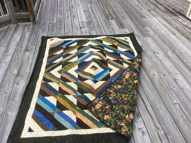 Our Happy Blocks for Maine Project is coming to an end and the blocks will be assembled into tops during the Maine sew-in the week of September 17th. In addition to sending in blocks for group quilts I assembled a couple tops and quilted them here using Cuddle backing donated by Shannon Fabrics. I’m looking forward to finishing more of these quilts this fall.